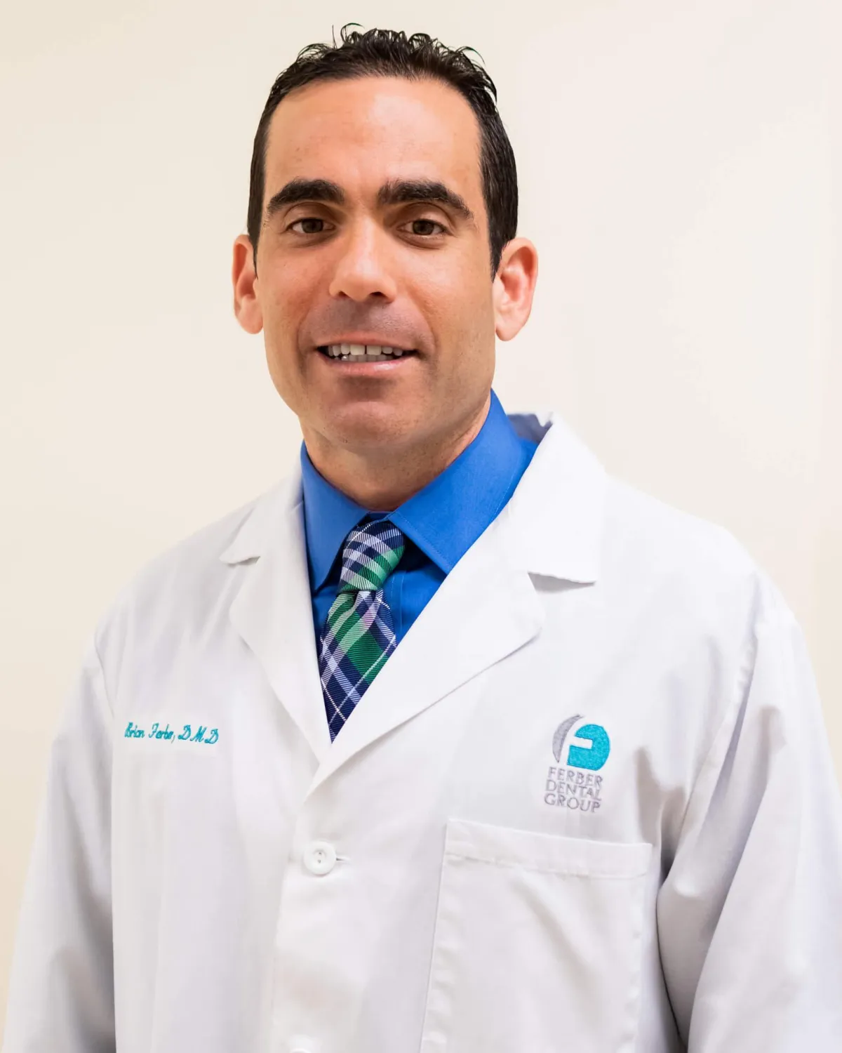 Dr. Brian Ferber grew up in East Brunswick, New Jersey. He is a graduate of Brandeis University and the University of Pennsylvania School of Dental Medicine where he was awarded the National Board Achievement Award. He completed a fellowship in advanced implant dentistry from the Southern Illinois University School of Dental Medicine and a clerkship in Oral Surgery and Bone Grafting from the University of Graz, in Graz, Austria. He received his training in Intravenous Sedation at Washington University School of Medicine in St. Louis and St. Joseph’s Medical Center in Patterson, New Jersey. He is a former faculty member at the St. Louis University School of Advanced Dental Education in the Department of Periodontics. Dr. Ferber’s philosophy that exceptional dental care should also be affordable to patients is the foundation for the Ferber Dental Group. When not in the office, Dr. Ferber spends his time enjoying his wife Sharon and four sons.